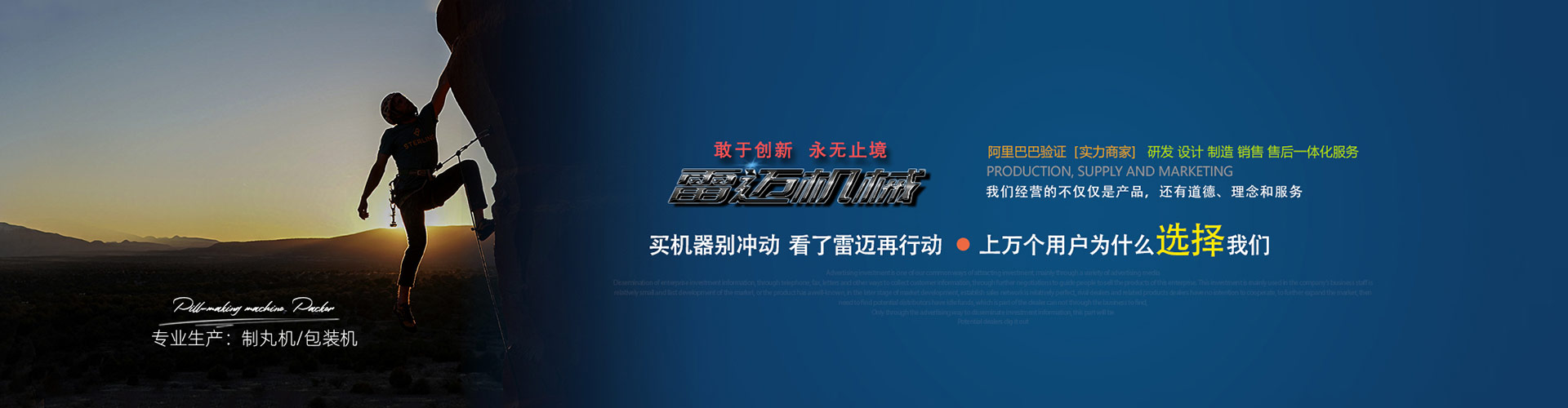 廣州雷邁機(jī)械設(shè)備有限公司成立于2011年,是一家專(zhuān)業(yè)生產(chǎn)銷(xiāo)售鋁塑泡罩包裝機(jī)廠(chǎng)家(適用于化妝品精華液灌裝、乳液膏霜面膜灌裝、洗護(hù)用品灌裝;食品行業(yè)辣椒醬、果醬、棒棒糖、菊花、等包裝;制藥行業(yè):膠囊片劑包裝、大蜜丸包裝),譚經(jīng)理歡迎了解制丸設(shè)備,超微粉碎設(shè)備,壓片設(shè)備,全自動(dòng)膠囊填充機(jī)設(shè)備,烘干設(shè)備,混合制粒設(shè)備的廠(chǎng)家。我司有*的機(jī)械生產(chǎn)設(shè)備和專(zhuān)業(yè)的檢測(cè)儀器,擁有一批專(zhuān)業(yè)的技術(shù)研發(fā)人員和熟練的生產(chǎn)技工,獲得多項(xiàng)國(guó)家技術(shù)。確立了以市場(chǎng)為取向的產(chǎn)品研究開(kāi)發(fā)、生產(chǎn)制造、營(yíng)銷(xiāo)與服務(wù)的綜合體系。公司一貫堅(jiān)持“優(yōu)質(zhì)服務(wù),信守合同”的宗旨,憑借著高質(zhì)量的產(chǎn)品,良好的信譽(yù),優(yōu)質(zhì)的服務(wù),產(chǎn)品全國(guó)近三十多個(gè)省、市、自治區(qū)以及遠(yuǎn)銷(xiāo)出口國(guó)家:東南亞國(guó)家、摩洛哥、阿根延、非洲國(guó)家、南美洲國(guó)家,印度等國(guó)家。竭誠(chéng)與國(guó)內(nèi)外商家雙贏(yíng)合作,共同發(fā)展,共創(chuàng)輝煌!我們奉行——信守承諾、...